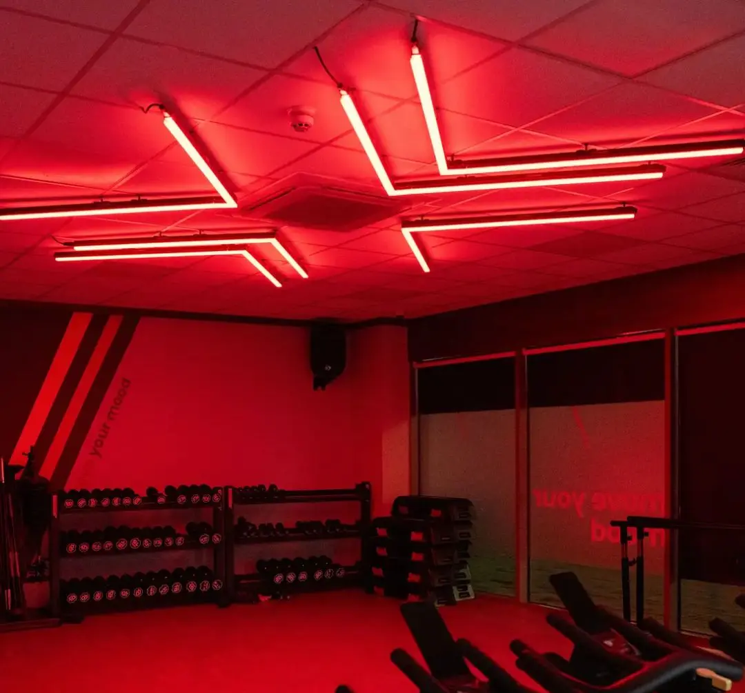 Tailor your lighting to fit any layout or style, from linear runs to chevron patterns, for a design that enhances every corner of your gym.